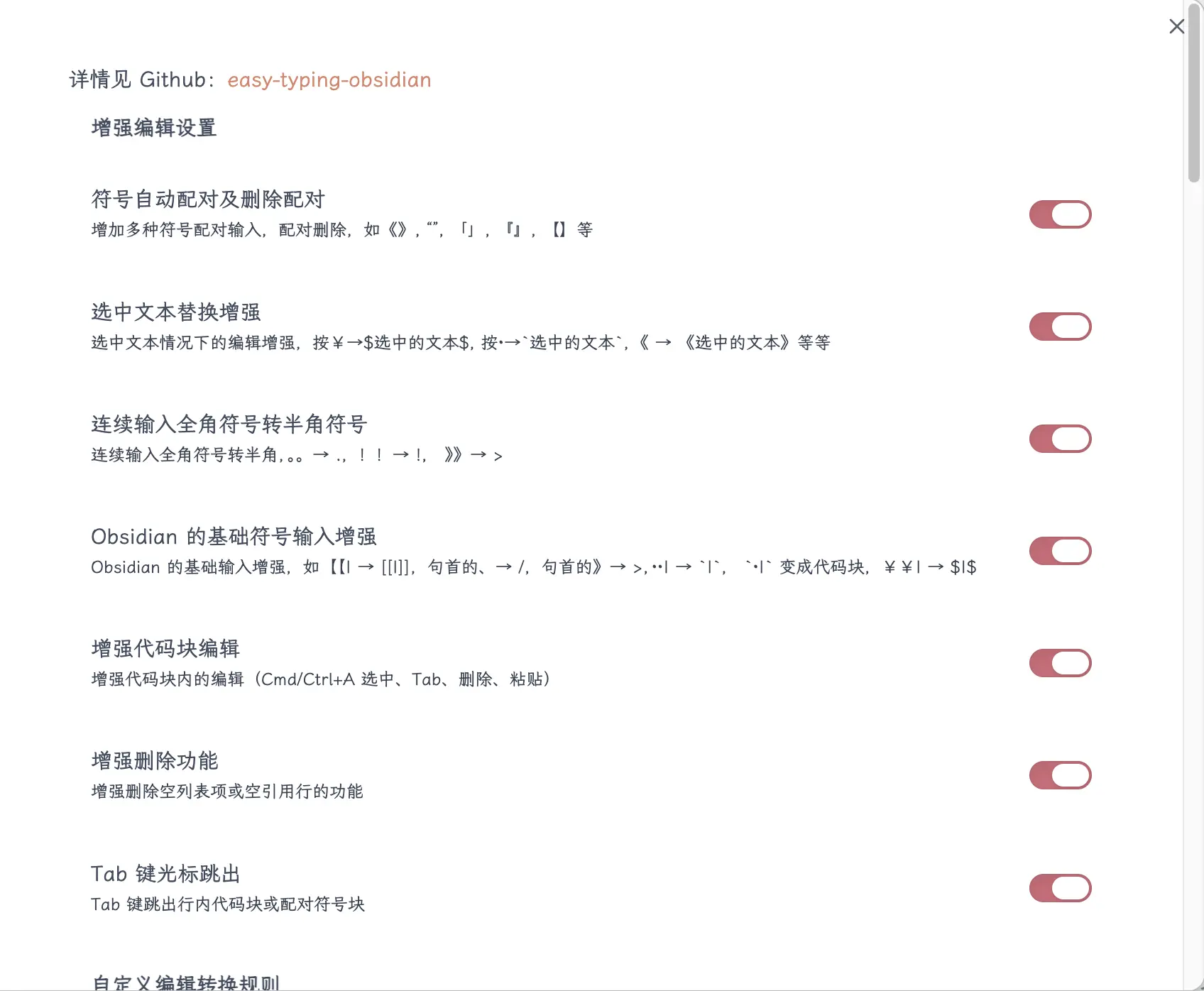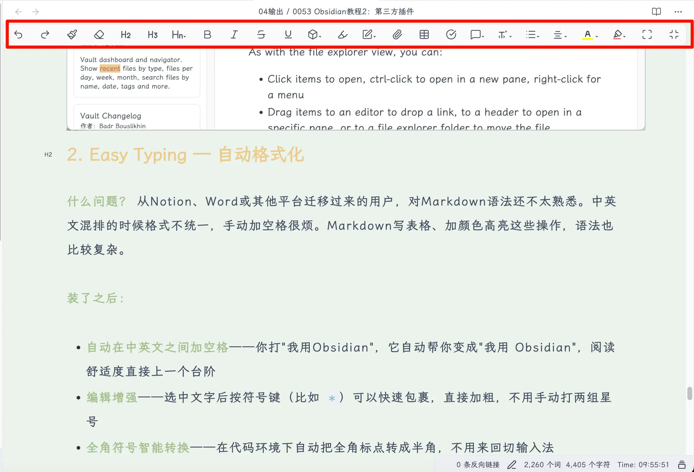 - 自动在中英文之间加空格——你打"我用Obsidian",它自动帮你变成"我用 Obsidian",阅读舒适度直接上一个台阶