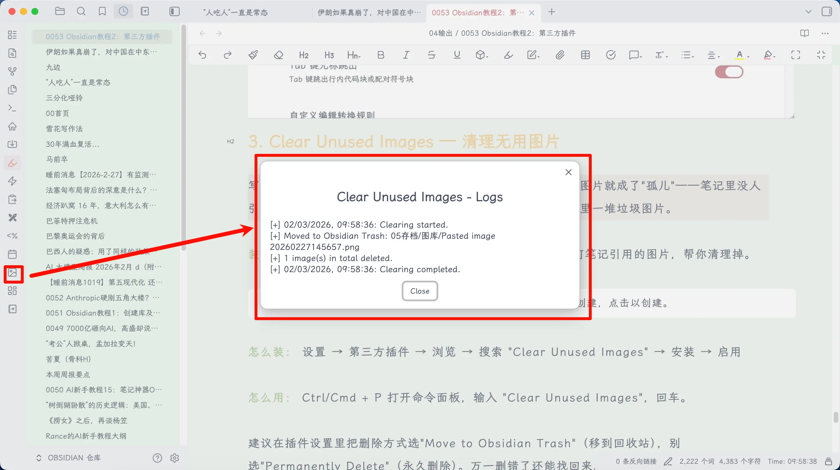 装了之后: 运行一次,它会扫描整个库,找出所有没有被任何笔记引用的图片,帮你清理掉。