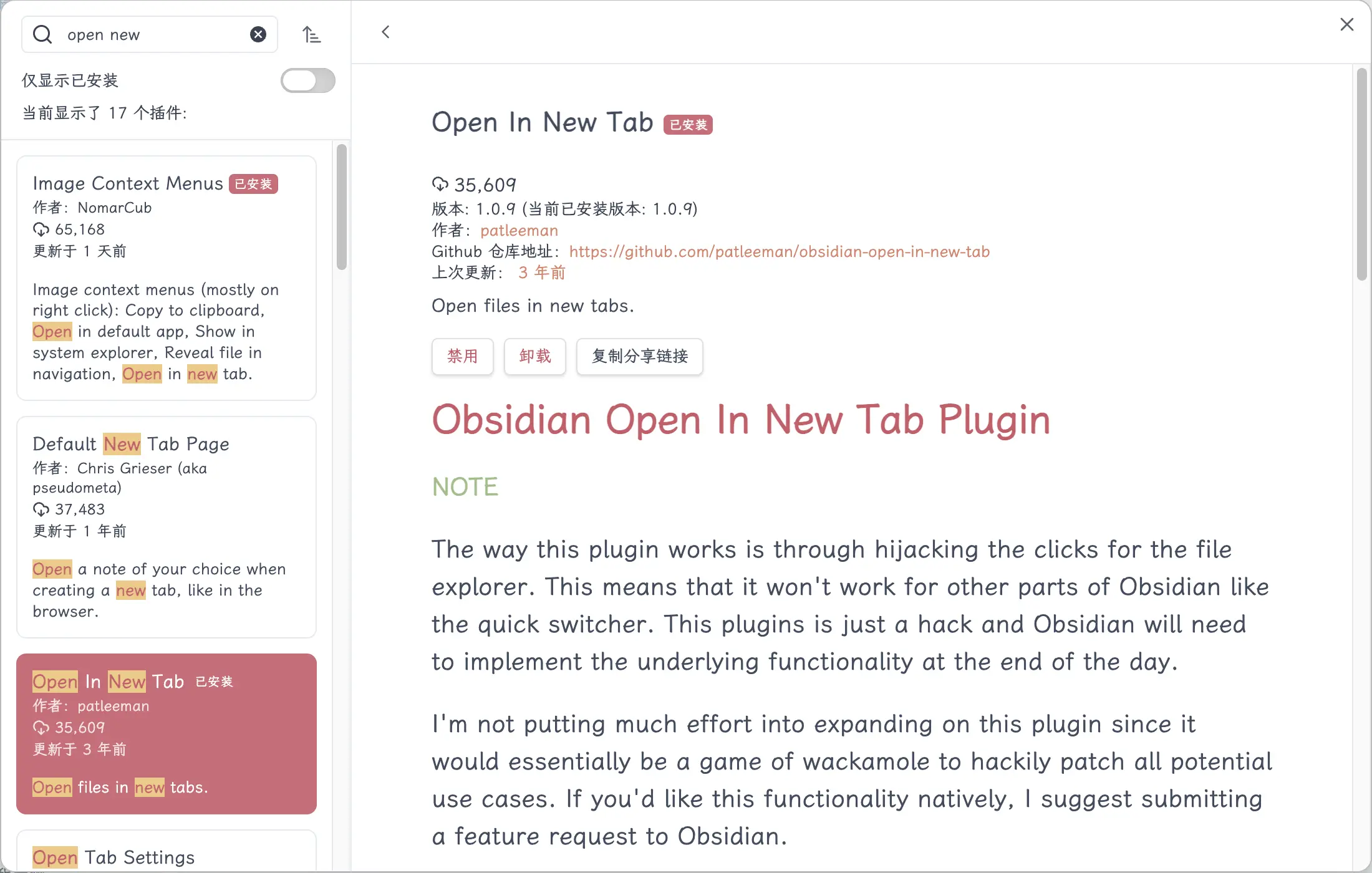 Obsidian的插件分两种:核心插件和第三方插件(也叫社区插件)。