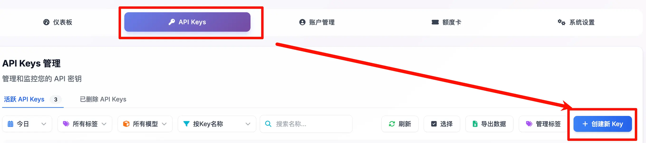 - API Key创建流程:API Keys→创建新Key→填名称→复制Claude配置(只显示一次!)